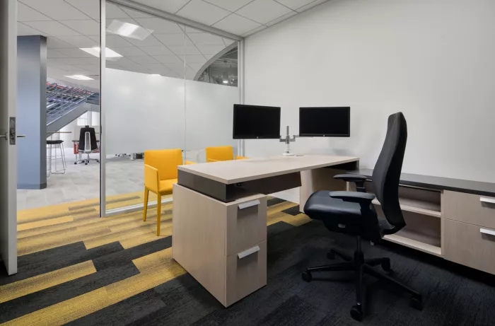 這里每一寸都為員工提供了一個(gè)支持他們成功的環(huán)境,依靠技術(shù)手段,打造鼓勵(lì)員工連接和溝通的氛圍。墻面白板、視頻會(huì)議室、各種空間和家具允許個(gè)人和團(tuán)隊(duì)在辦公室內(nèi)的完美位置進(jìn)行協(xié)作,當(dāng)然,如果想來一場(chǎng)即興的乒乓球比賽也未嘗不可。