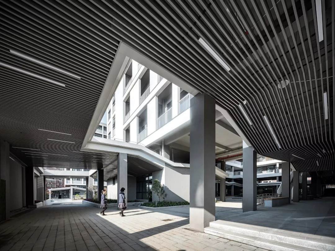 由零壹城市建筑事務(wù)所(LYCS Architecture)從2016年開(kāi)始設(shè)計(jì)的義烏新世紀(jì)外國(guó)語(yǔ)學(xué)校如今已投入使用,也剛結(jié)束了它的第一學(xué)期。這個(gè)位于浙江省義烏市主城區(qū)的學(xué)校是杭州新世紀(jì)外國(guó)語(yǔ)學(xué)校的分校,共有48個(gè)班的小學(xué)與24個(gè)班的初中。它作為僑商回國(guó)的開(kāi)篇之作,也是零壹城市一直以來(lái)持續(xù)關(guān)注與探究的高密度城市與教學(xué)空間設(shè)計(jì)問(wèn)題的典型實(shí)踐之一。