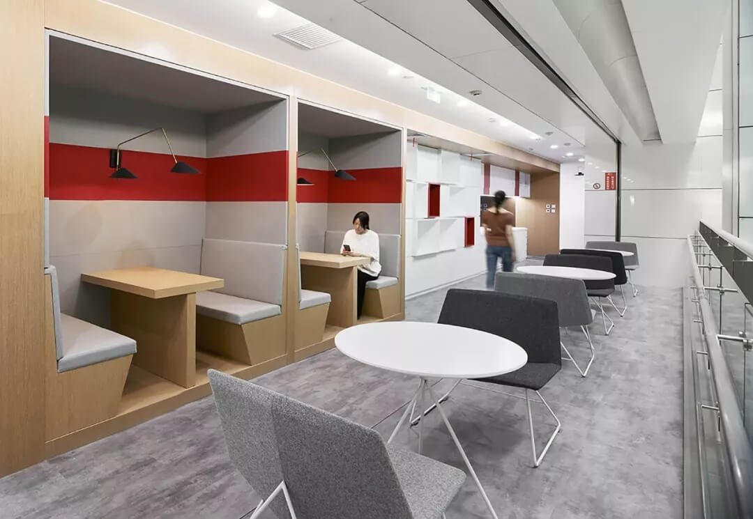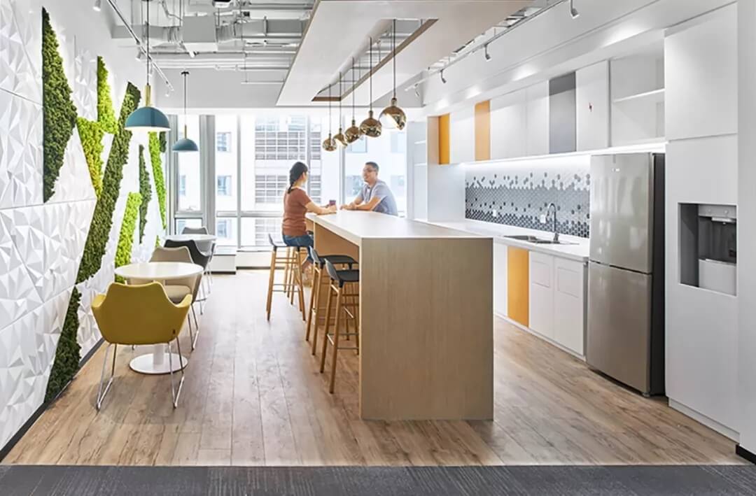 辦公空間設(shè)計無論如何發(fā)展,追求高效率始終是不變的目標。艾迪爾倡導(dǎo)的靈活辦公,是想通過辦公環(huán)境設(shè)計鼓勵員工多互動,更有量有質(zhì)的交流,因此在設(shè)定一系列休閑洽談區(qū)以外,茶水區(qū)這一休憩,互動,輕松交流的高頻區(qū)也是設(shè)計重點,是體現(xiàn)企業(yè)風(fēng)格和人文關(guān)懷的重點打造區(qū),滿足員工不同的選擇和空間體驗感。