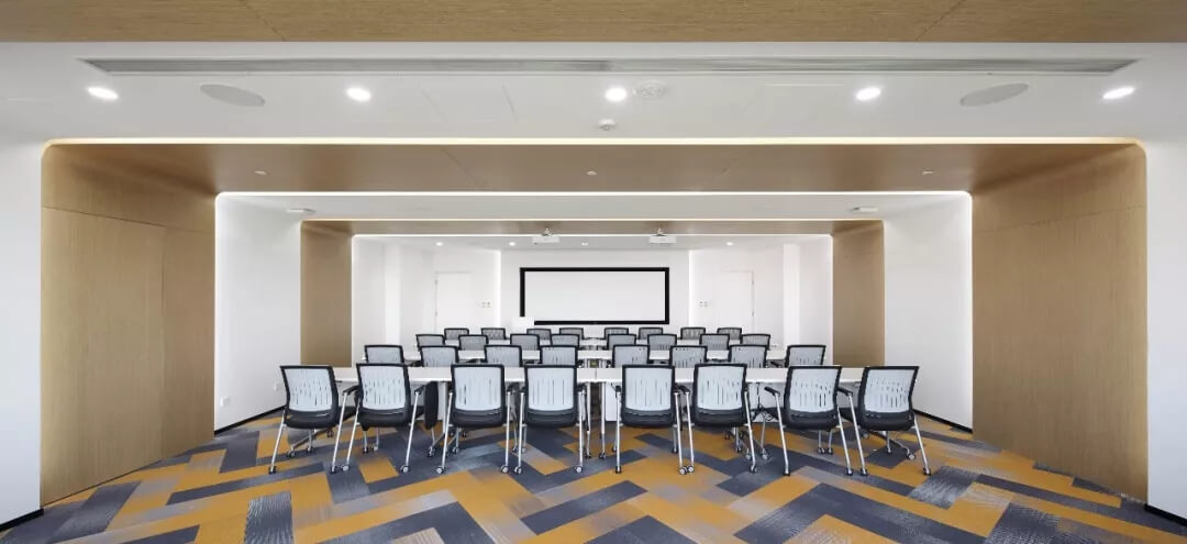 六層多功能培訓(xùn)室兼文化展示區(qū)可以舉辦小型演講、討論會等活動,既是公司內(nèi)部集體活動場所,也能夠面向公眾及社會開展其他相關(guān)功能性的活動。