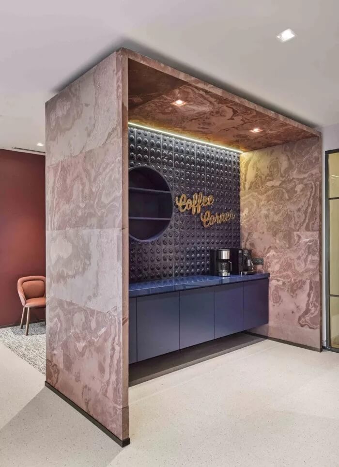 巧克力學院作為該項目的重要組成部分,其設計目的是讓每位客人都能在進入Barry Callebaut Istanbul時,被其獨特的魔力所俘虜。于是,這個美麗的色彩,鼓舞人心的形狀,優(yōu)雅的款待 - 就被抽象出來,為辦公室裝修營造出別致的建筑環(huán)境。擁有色彩繽紛,令人驚嘆的空間,捕捉其最重要產(chǎn)品 - 巧克力的精華,優(yōu)雅和美味。
