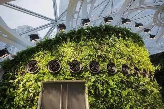 Living Wall 應(yīng)該是 The Spheres 最大的特色,足有四五層樓高,擁有超過 25000 種植物,被植入 4000 平方英尺的墻內(nèi),是生物多樣性的創(chuàng)新示范,同時也是亞馬遜園藝學(xué)家 Ben Eiben 的心血結(jié)晶。