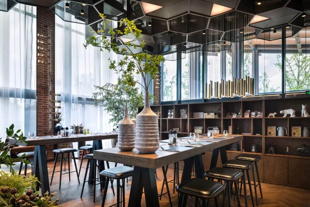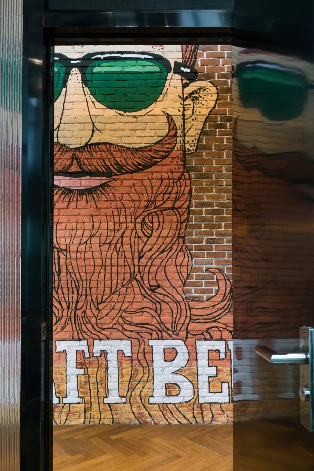 自然的青翠綠意與質(zhì)樸的啤酒桶木藝氣質(zhì)互融,靈韻交加,酒香沁人,不加過多修飾地圍合出一隅相對靜謐的臨窗休閑區(qū)。在這里,設(shè)計透過落地玻璃窗的相隔將內(nèi)外視域完全打開,陽光傾灑進(jìn)來,引入截然不同的清新與濃密的自然舒適度,外在景觀與內(nèi)在布設(shè)氣質(zhì)相合。