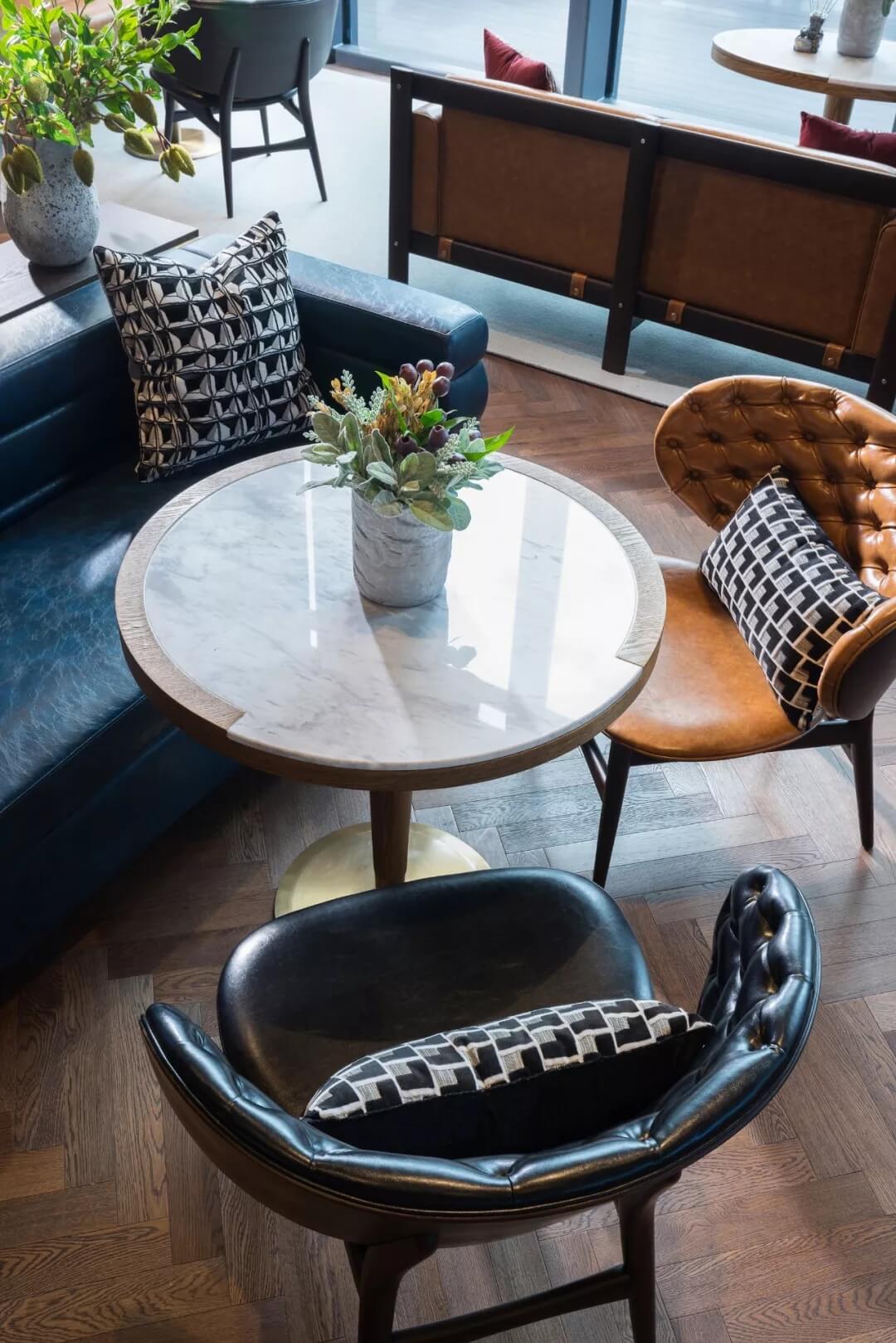 設(shè)計運用極簡的語言,打開空間與自然的悄聲對話,咖色的皮質(zhì)沙發(fā)、幾處花藝、數(shù)個土陶裝飾,充盈著活力與生氣,人們置身此處,身心分外舒愜。