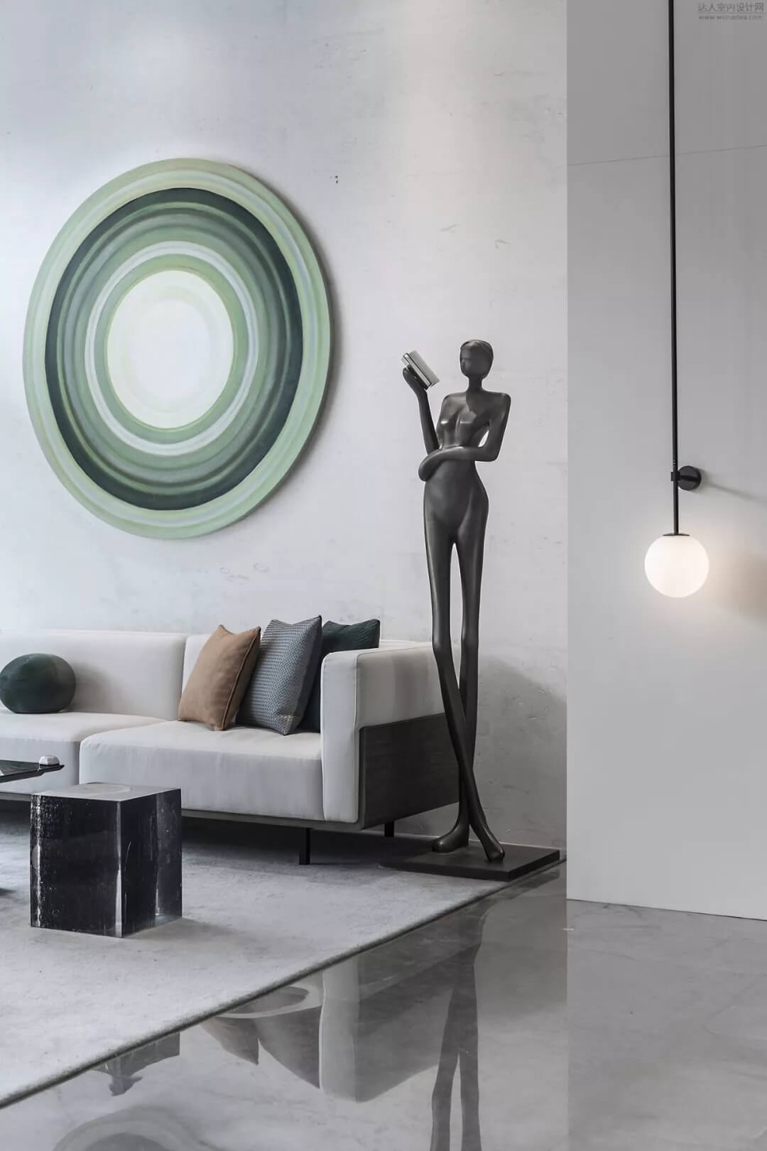 文明的前行離不開(kāi)知識(shí)的積累,時(shí)間的沉淀會(huì)給人類提供更多的寶貴經(jīng)驗(yàn),有心的設(shè)計(jì)靜立與整個(gè)空間,凝結(jié)的時(shí)間之輪·以樹(shù)木年輪為靈感是此處洽談區(qū)的特色,手拿書(shū)籍的雕塑予以智慧的氣息的重要性。