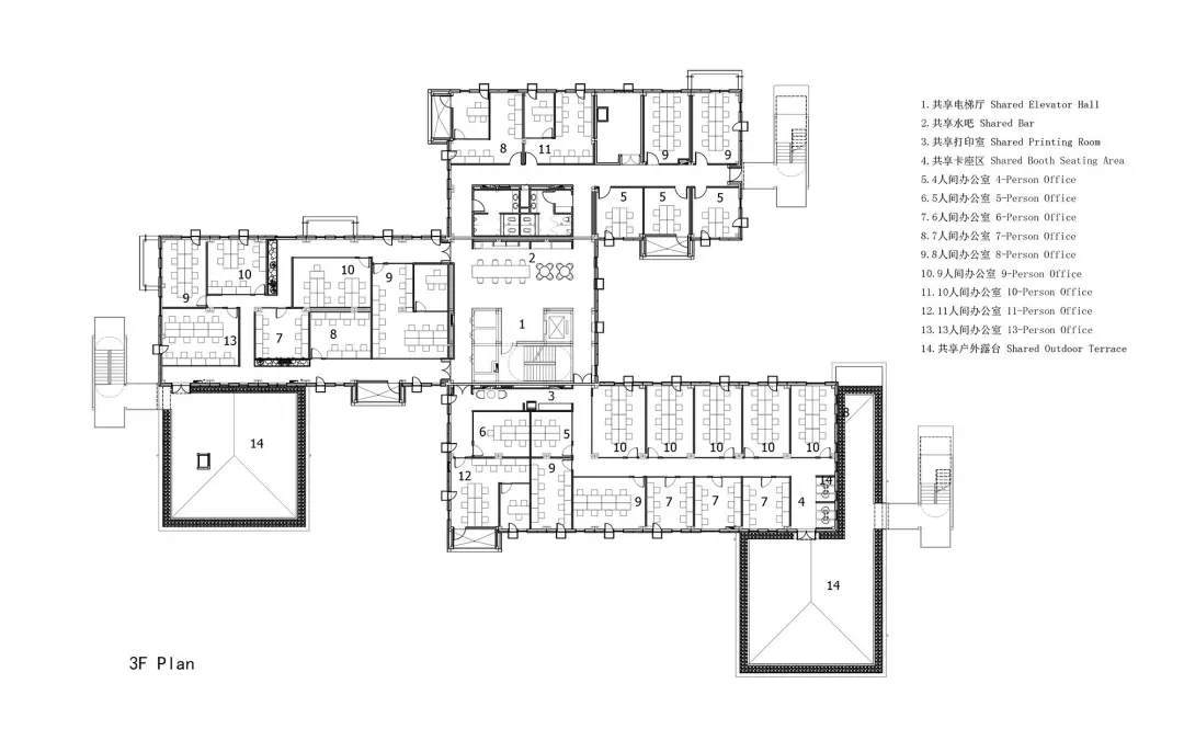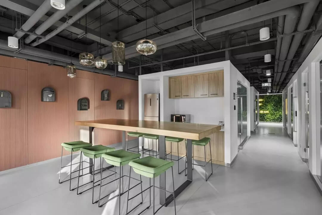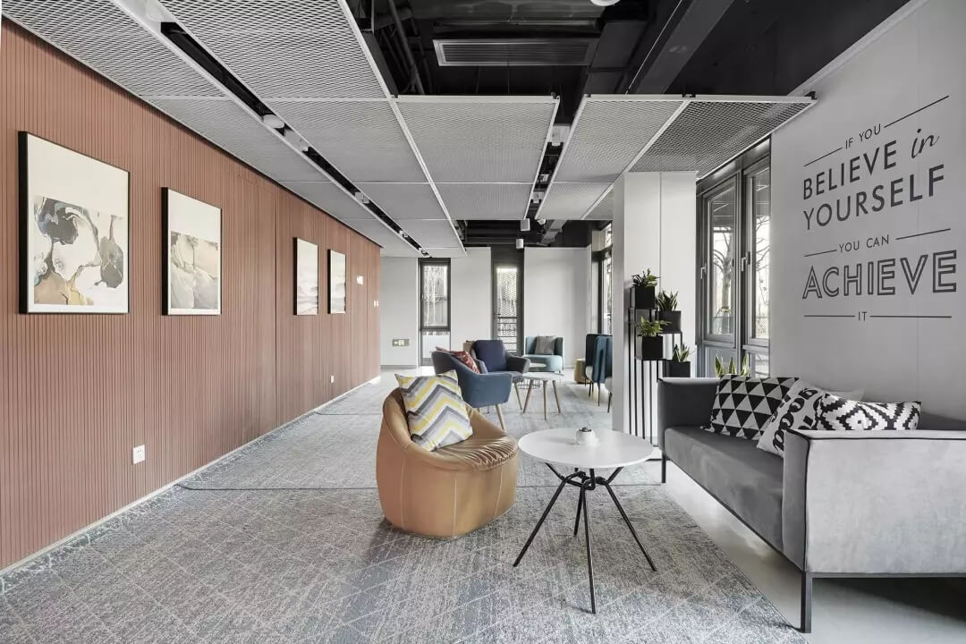 在空間劃分上,我們遵循城市綠色生態(tài)美學(xué),充分利用創(chuàng)新技術(shù)進(jìn)行模塊化設(shè)計,將裝配式建造、節(jié)能低碳等許多新理念應(yīng)用到整個空間中去,將整體空間劃分成商務(wù)區(qū)、辦公區(qū)和休閑區(qū),具體到擁有獨立辦公室65個,辦公工位464個,會議室5個,以及水吧、咖啡廳、休息艙、茶室、電話亭等共享區(qū),我們想要脫離傳統(tǒng)辦公空間的單調(diào)枯燥,讓一站式的休閑服務(wù)和辦公完美結(jié)合,觸達(dá)現(xiàn)代人內(nèi)心的深層需求,從而使整體設(shè)計方案在保持高品質(zhì)的同時做到高效、低成本。