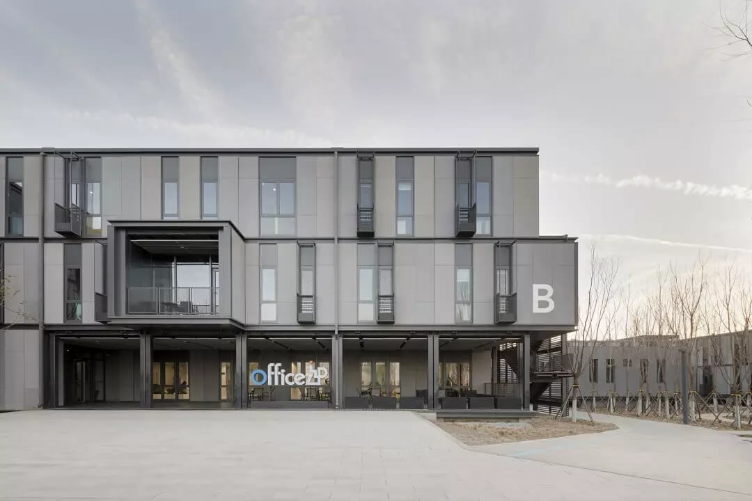 在雄安市民服務(wù)中心這塊占地面積廣達(dá)9.96萬平方米的新生沃土上,有序林立著公共服務(wù)區(qū)、行政服務(wù)區(qū)、生活服務(wù)區(qū)、入駐企業(yè)辦公區(qū)四大建筑群落。而當(dāng)落眼于其中入駐企業(yè)辦公建筑群落中的B棟Officezip時,不禁感受到從內(nèi)而外綻放著的生態(tài)綠意。