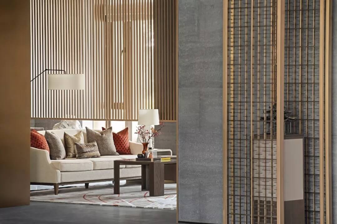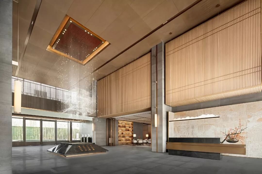 踏入第一重空間的迎賓前廳,大堂挑空高7.7米,氣勢恢宏。“甲第者以禮為官也,不學禮,無以立。”為此,迎賓區(qū)的設(shè)計干練簡潔,以飽含的禮儀序列拉開整個空間的序幕。