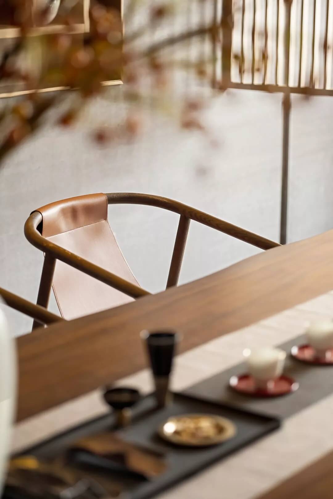 后廳兩端藝術(shù)裝置呈矩陣對稱分布,延續(xù)了古老東方的嚴肅審美。在材質(zhì)多元的形態(tài)下,又極具層次變化。
