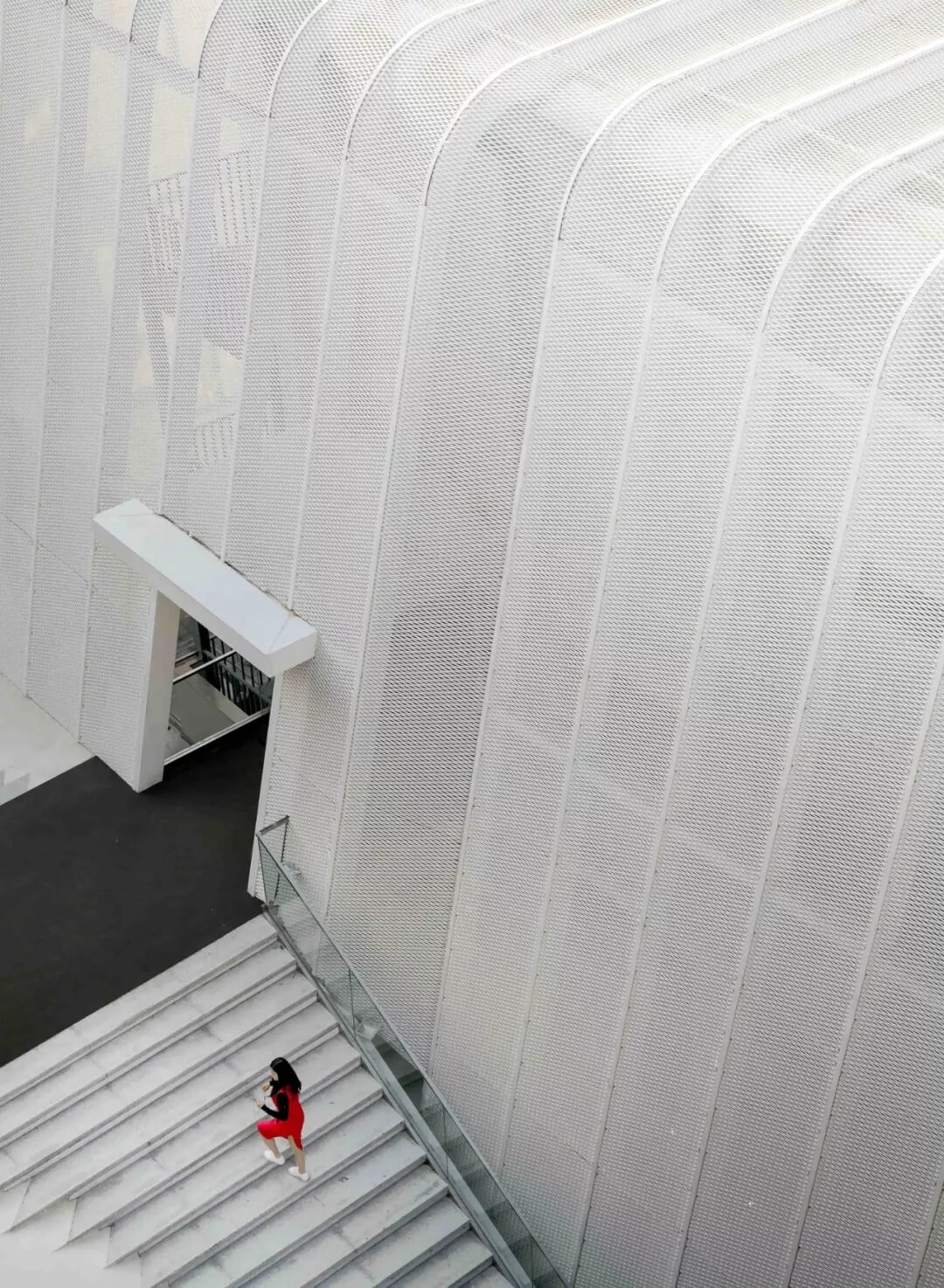 薄殼結(jié)構(gòu)與金屬幕墻構(gòu)成的“裙擺”創(chuàng)造出一層集合酒店接待、休憩與多功能廳的開放服務(wù)空間,漂浮為頂,下落為幕,抬升為廳,下沉為梯,旅客可以在裙擺之上游走,形成一條多變的觀景路徑,還原了山城的空間體驗(yàn)。