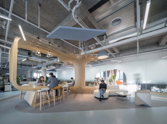 如同城市生態(tài),辦公空間亦成為交流互動(dòng)的樞紐中心,移除大多數(shù)中國(guó)典型辦公室的正式和過(guò)時(shí)的模式特征,設(shè)計(jì)師創(chuàng)造了可滿足當(dāng)代員工的需求的現(xiàn)代、創(chuàng)新和舒適的工作空間。