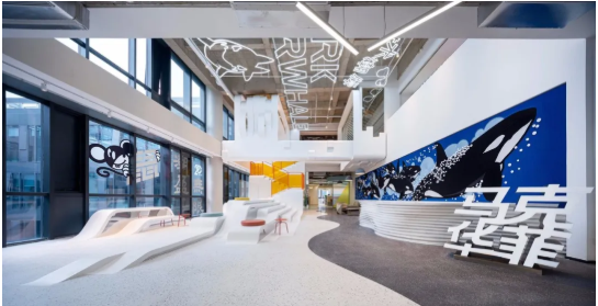 尖端時(shí)尚品牌馬克華菲(Mark Fairwhale)的總部位于上海。該項(xiàng)目基于品牌文化基因,主要運(yùn)用了水與鯨魚(yú)的主題元素,并且創(chuàng)造出靈活而又敏捷的工作空間。同時(shí)借此呼應(yīng)其新鮮年輕的風(fēng)格定位。