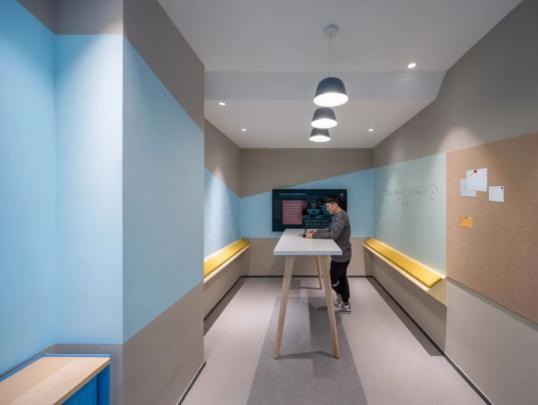 該項(xiàng)目的另一個(gè)重要的設(shè)計(jì)出發(fā)點(diǎn)是設(shè)計(jì)師期望將上海這個(gè)城市的活力與多樣性引入并轉(zhuǎn)化為工作空間的功能分布,因此,整個(gè)辦公室中從任意工位出發(fā)走到就近洽談