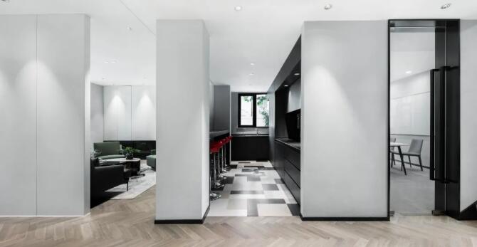 室內(nèi)為符合當(dāng)代辦公需求,定位現(xiàn)代簡(jiǎn)約時(shí)尚的風(fēng)格,白色和黑色的主色調(diào),中間銜接色的灰色調(diào),將一至三樓空間一氣呵成,沒(méi)有多余的修飾,打造出一個(gè)宜居、充滿藝術(shù)氣質(zhì)的住宅式辦公環(huán)境。
