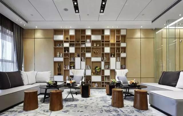 接待前廳:木制線條勾勒出自然光影變幻,原木的質(zhì)樸粗糲與細(xì)致的金屬線條對(duì)撞出現(xiàn)代美學(xué)趣味,生動(dòng)有趣的屏風(fēng)和燈飾,石材與金屬板映襯出明暗互動(dòng),虛實(shí)掩映的空間氣質(zhì),輕松雅致是設(shè)計(jì)者締造氛圍的關(guān)鍵。