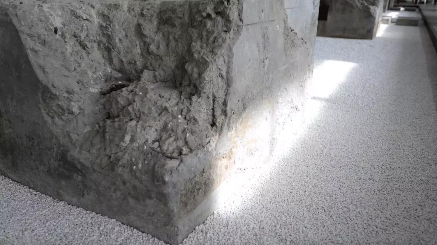 天窗的陽光投射在舊石墩上,光隨時間緩慢流淌,從晨曦到夕陽日復(fù)一日的撫摸石墩的肌理。人們彷彿可以感知到這片土地的過往,一天一年一個世紀,或者更遠。