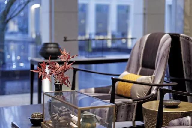 玻璃窗外,暮色朦朧氤氳中,充盈著自然的綠意,一處盆景,暖樹染綠,更添別樣情致。深色的金屬和皮革的質(zhì)感,簡化形態(tài)的中式家具,香爐書卷,幾處綴花,穿越時(shí)空,對(duì)話古今。“到處皆詩境,隨時(shí)有物華”大抵如此。