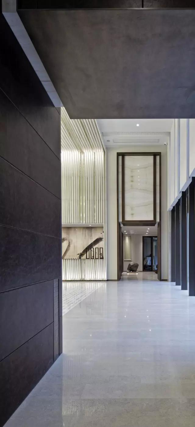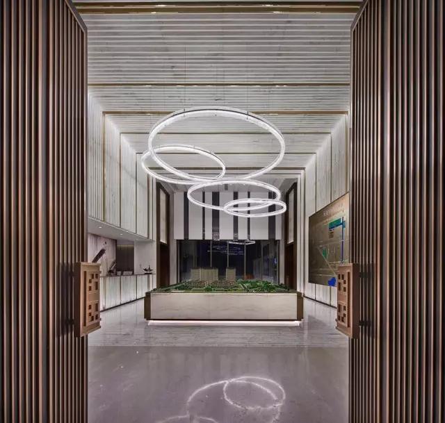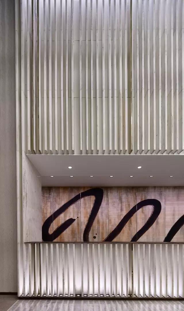 穿過充滿東方韻味的水中步道,在移步易景的氛圍里,不自覺地調(diào)慢身心節(jié)奏,悠然步入接待中心。設(shè)計(jì)師不拘泥于傳統(tǒng)石材的形體結(jié)構(gòu)和飾面方式,大膽創(chuàng)新地更改重構(gòu)。