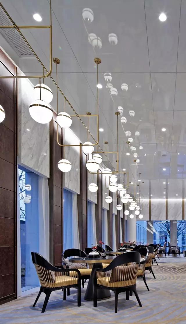 大型吊燈宛如運(yùn)河之水泛起的漣漪,靈動(dòng)唯美,抓人眼球。地面低調(diào)華麗的灰色大理石與之遙相呼應(yīng),古代先哲素有“天圓地方”之說,意境深遠(yuǎn)的寫意格調(diào)翩然入室,整個(gè)空間滲透著典雅尊貴的氣派。