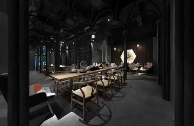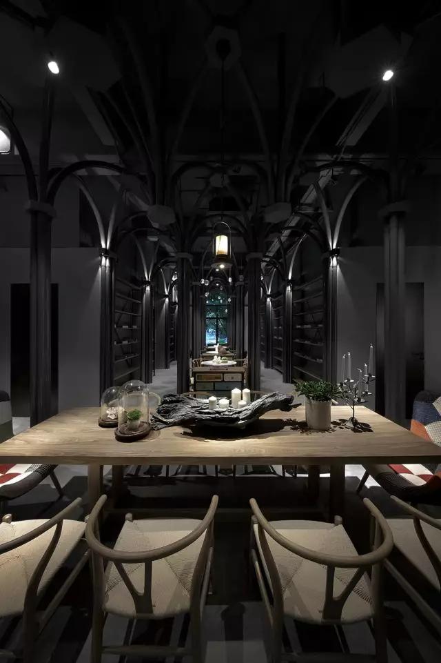原建筑空間剛剛結(jié)束了破敗的工業(yè)廠房的狀態(tài),業(yè)主接手時(shí)還是一片狼藉。項(xiàng)目的運(yùn)營團(tuán)隊(duì)希望打造集餐飲區(qū)、咖啡區(qū)、音樂活動(dòng)區(qū)及一個(gè)塔羅牌活動(dòng)區(qū)為一體的復(fù)合空間。設(shè)計(jì)團(tuán)隊(duì)從項(xiàng)目的主題概念中所散發(fā)的神秘色彩入手,希望在偏精神層面的建筑中汲取靈感,翻閱并走訪了大量的哥特式建筑,從挺拔向上的建筑空間結(jié)構(gòu)中體會與神對話的力量感,然后將其移植到這個(gè)項(xiàng)目中,以當(dāng)代的構(gòu)成形式,向傳統(tǒng)建筑致敬。