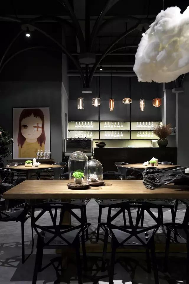 考慮到經(jīng)濟(jì)性、便捷的施工工藝與周期,清水混泥土成為了主要的材質(zhì)。由哥特式建筑引發(fā)的圓管結(jié)構(gòu)設(shè)計(jì),在空間中重組、穿插、演繹了一場哥特式感覺的舞臺劇,其高潮莫過于咖啡區(qū)的一朵白色漂浮的云。設(shè)計(jì)最大限度的融入了環(huán)保概念,不僅所有的材料都是可以回收利用的,而且定制安裝的方法既減少了現(xiàn)場的污染,也節(jié)省了施工周期。設(shè)計(jì)團(tuán)隊(duì)選擇了很多具有趣味性的當(dāng)代藝術(shù)作品來為空間注入時(shí)尚而放松的氣質(zhì),輔以層次豐富的燈光效果,將空間打造成了一個(gè)優(yōu)雅而又風(fēng)趣的雅皮士的感覺。